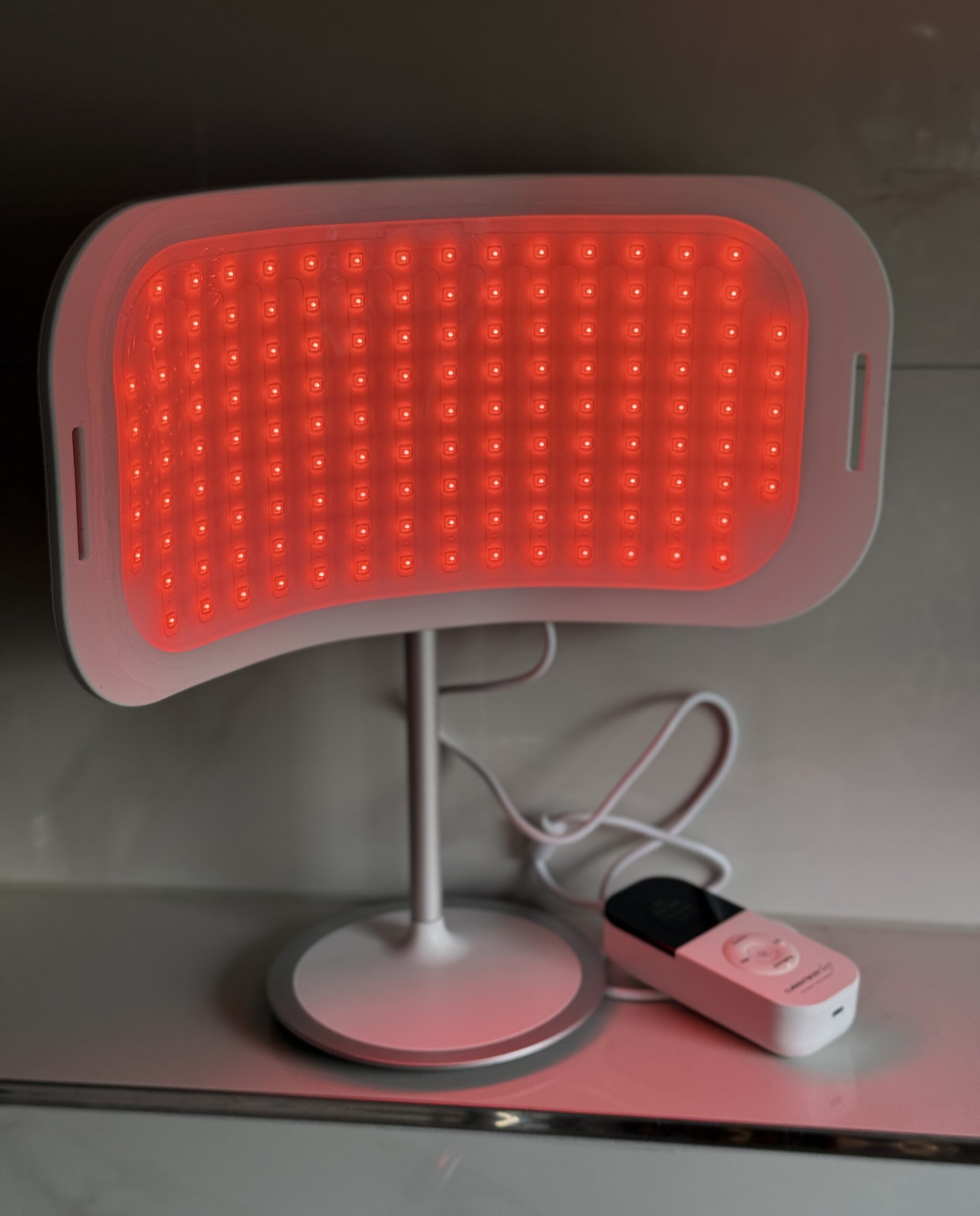 Rood licht (633 nm), nabij-infrarood licht (830 nm) en diep nabij-infrarood licht (1072 nm). Werkt dieper in de huid en kan helpen bij het stimuleren van collageen en elastine, waardoor het interessant is voor huidversteviging, herstel en anti-ageing. Uit persoonlijke ervaring kan ik melden dat rood licht heeft geholpen bij het sneller vervagen van mijn hyperpigmentatie en het kalmeren van roodheid door rosacea. Ook heeft mijn huid hiermee een mooiere glow gekregen.